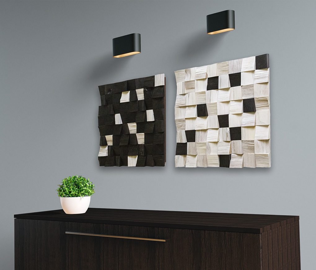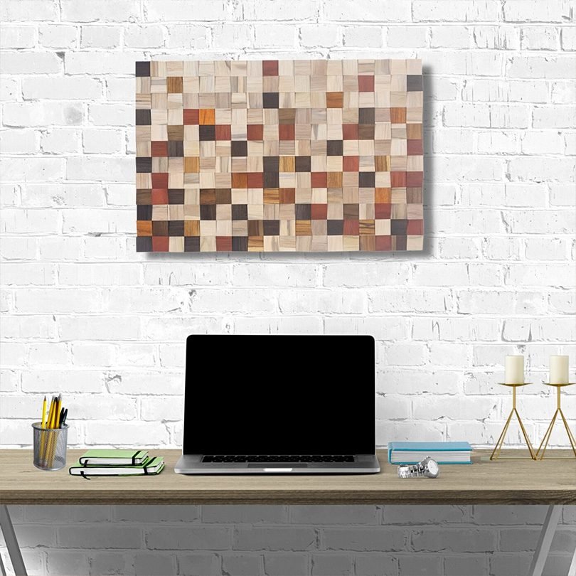 Mas o mercado de decoração precisava de arte customizável em madeira para parede, onde as cores e tamanhos pudessem ser adaptados para atender às necessidades dos projetos de interiores.